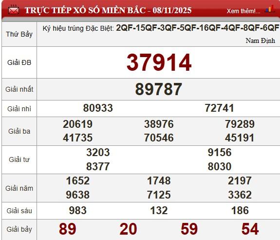 Kết quả Xổ số miền Bắc ngày 8/11/2025