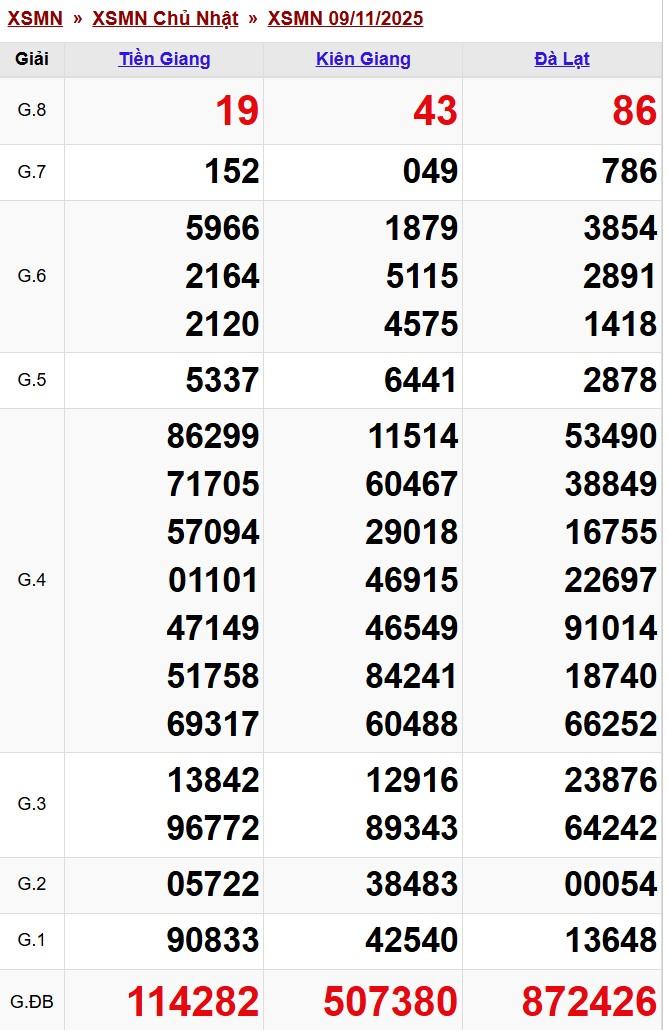Kết quả xổ số miền Nam ngày 9/11/2025