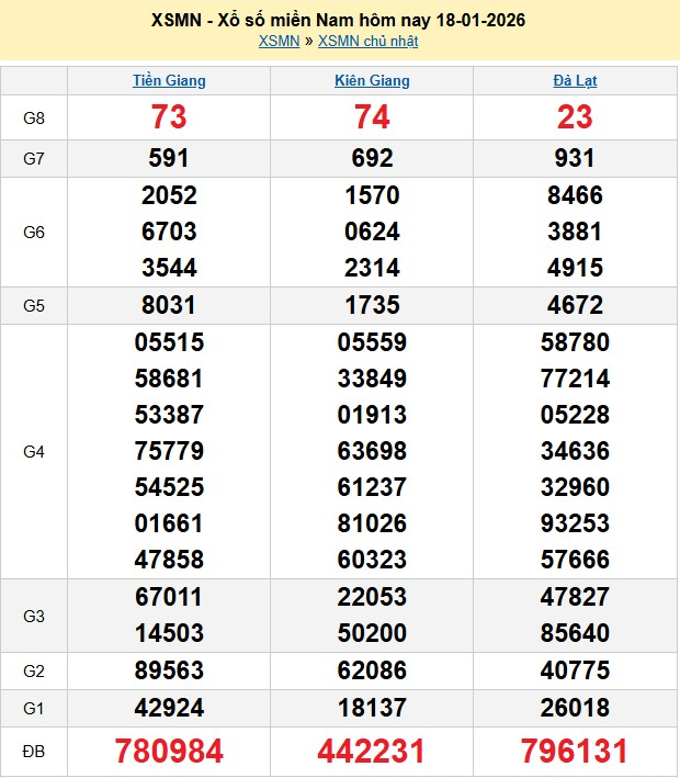 Kết quả xổ số miền Nam ngày 18/1/2026
