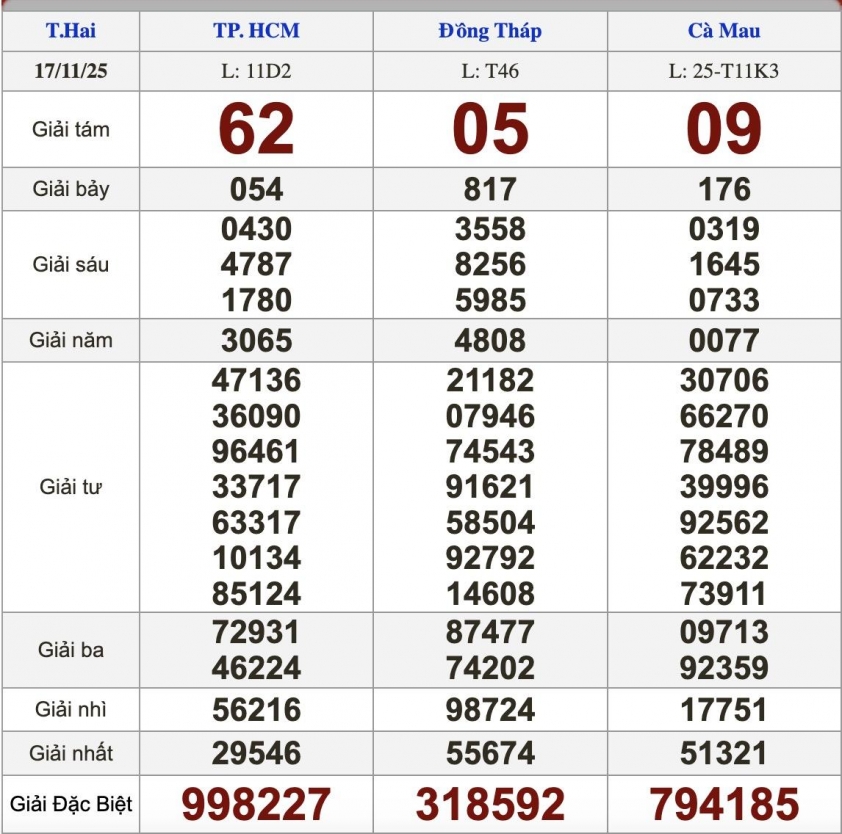 Kết quả xổ số miền Nam ngày 17/11/2025