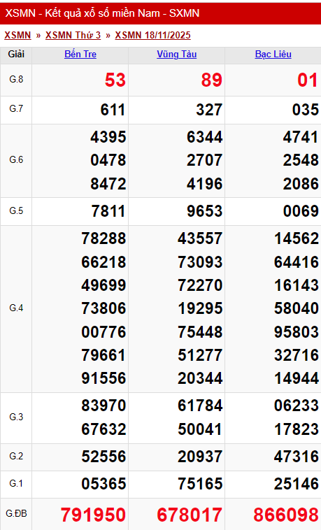 Kết quả xổ số miền Nam ngày 18/11/2025