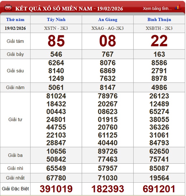 Kết quả xổ số miền Nam ngày 19/2/2026
