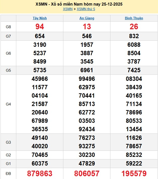 Kết quả xổ số miền Nam ngày 25/12/2025