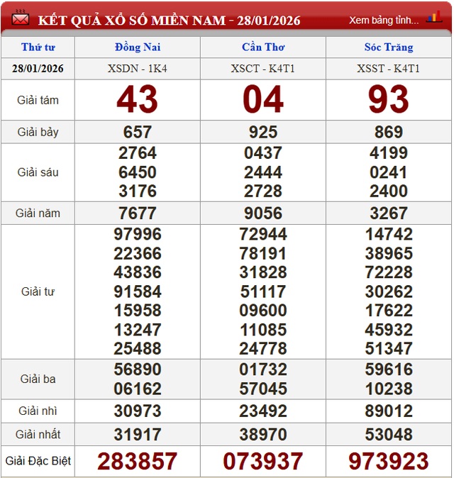 Kết quả xổ số miền Nam ngày 28/1/2026