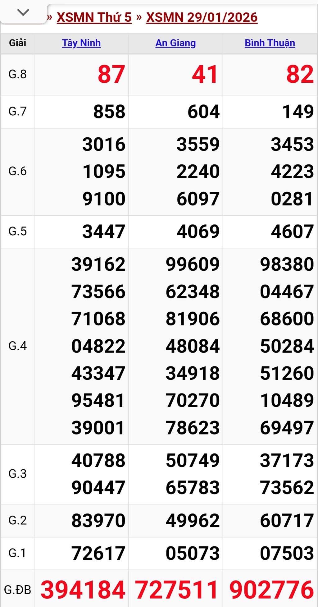 Xem kết quả XSMN các kỳ trước