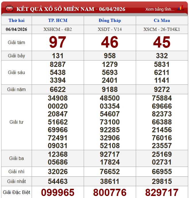 Kết quả xổ số miền Nam ngày 6/4/2026