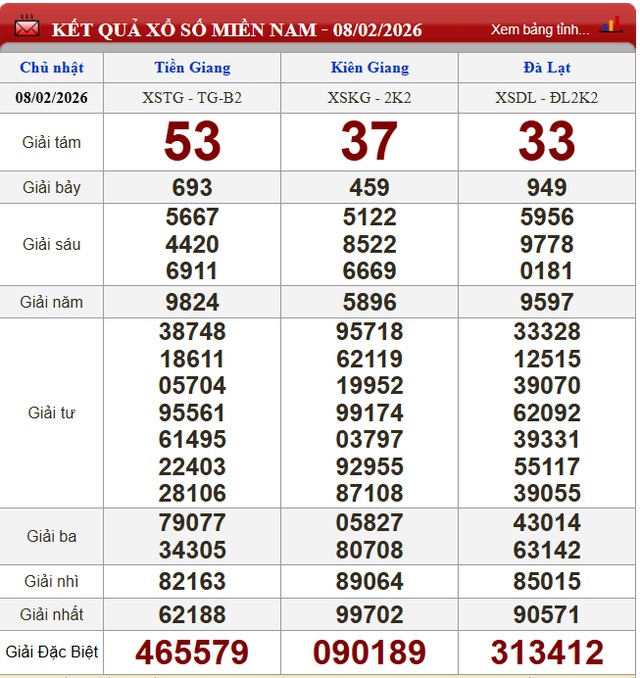 Kết quả xổ số miền Nam ngày 8/2/2026