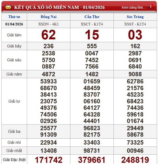 Kết quả xổ số miền Nam ngày 1/4/2026