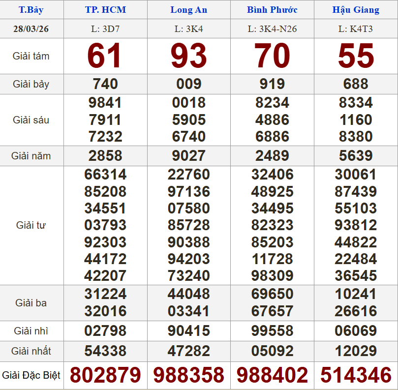Kết quả xổ số miền Nam ngày 28/3/2026