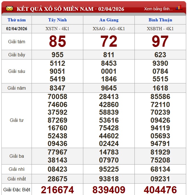 Kết quả xổ số miền Nam ngày 2/4/2026