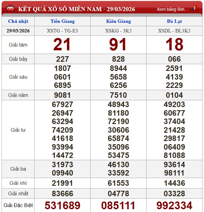 Kết quả xổ số miền Nam ngày 29/3/2026