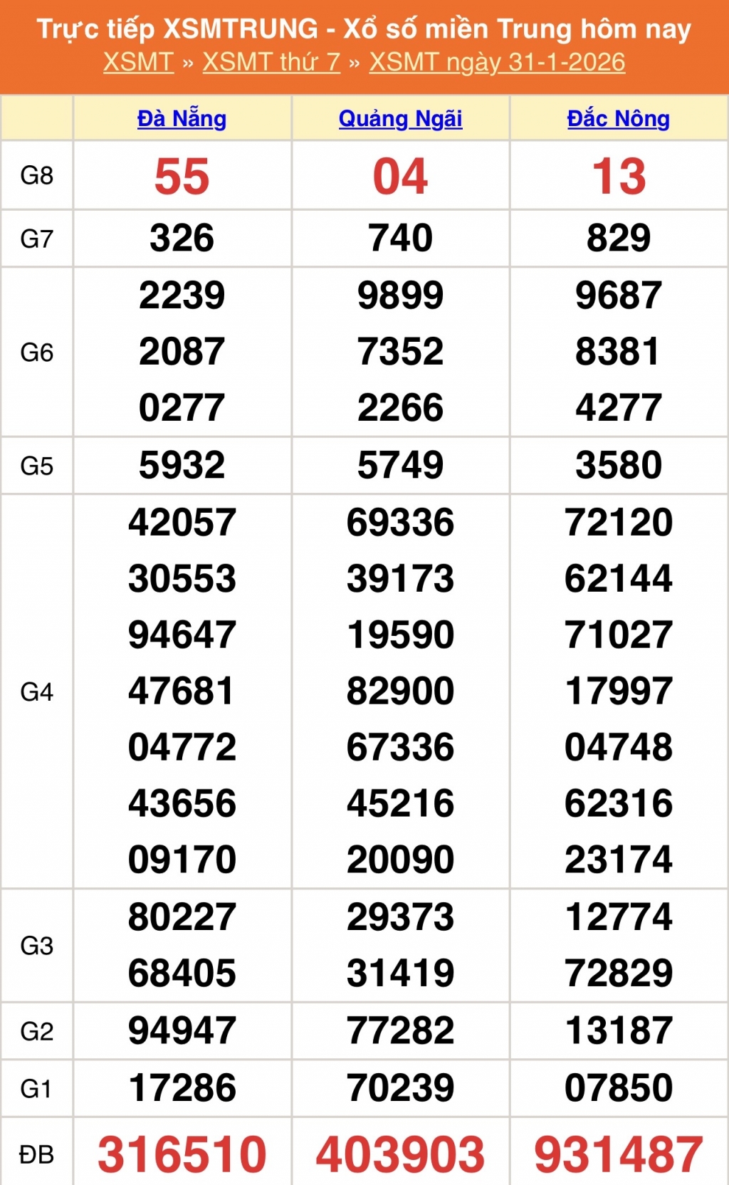 Kết quả xổ số miền Trung ngày 31/1/2026