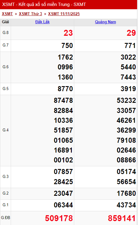 Kết quả xổ số miền Trung ngày 11/11/2025