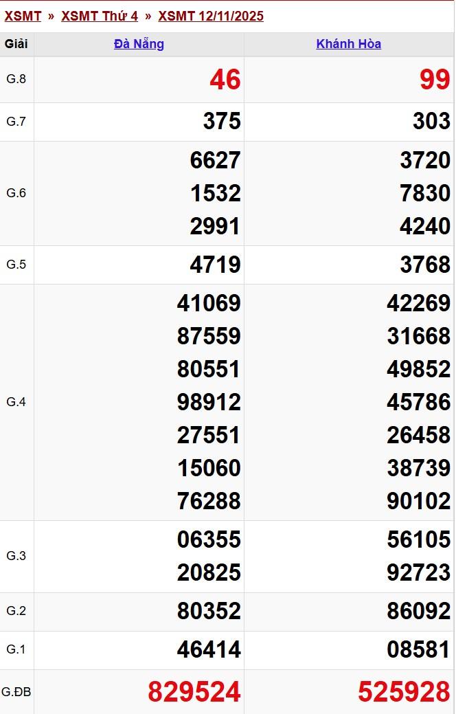 Kết quả xổ số miền Trung ngày 12/11/2025