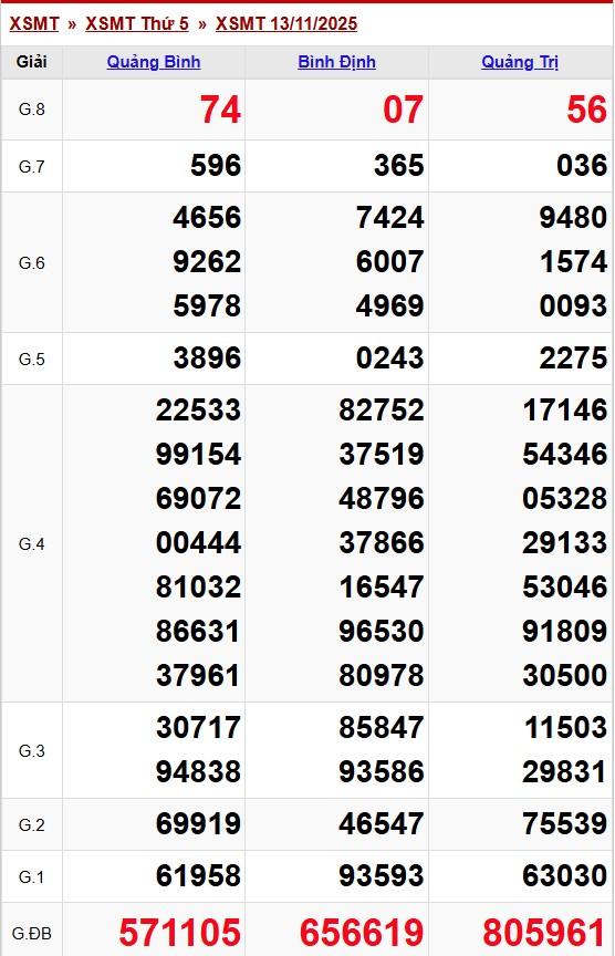 Kết quả xổ số miền Trung ngày 13/11/2025