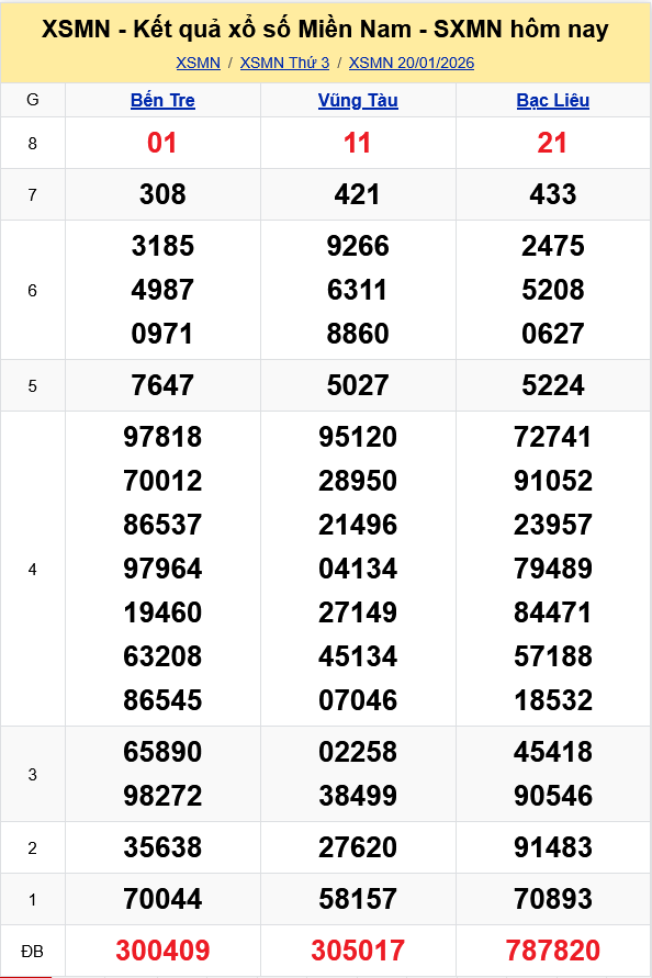 Kết quả xổ số miền Trung ngày 20/1/2026