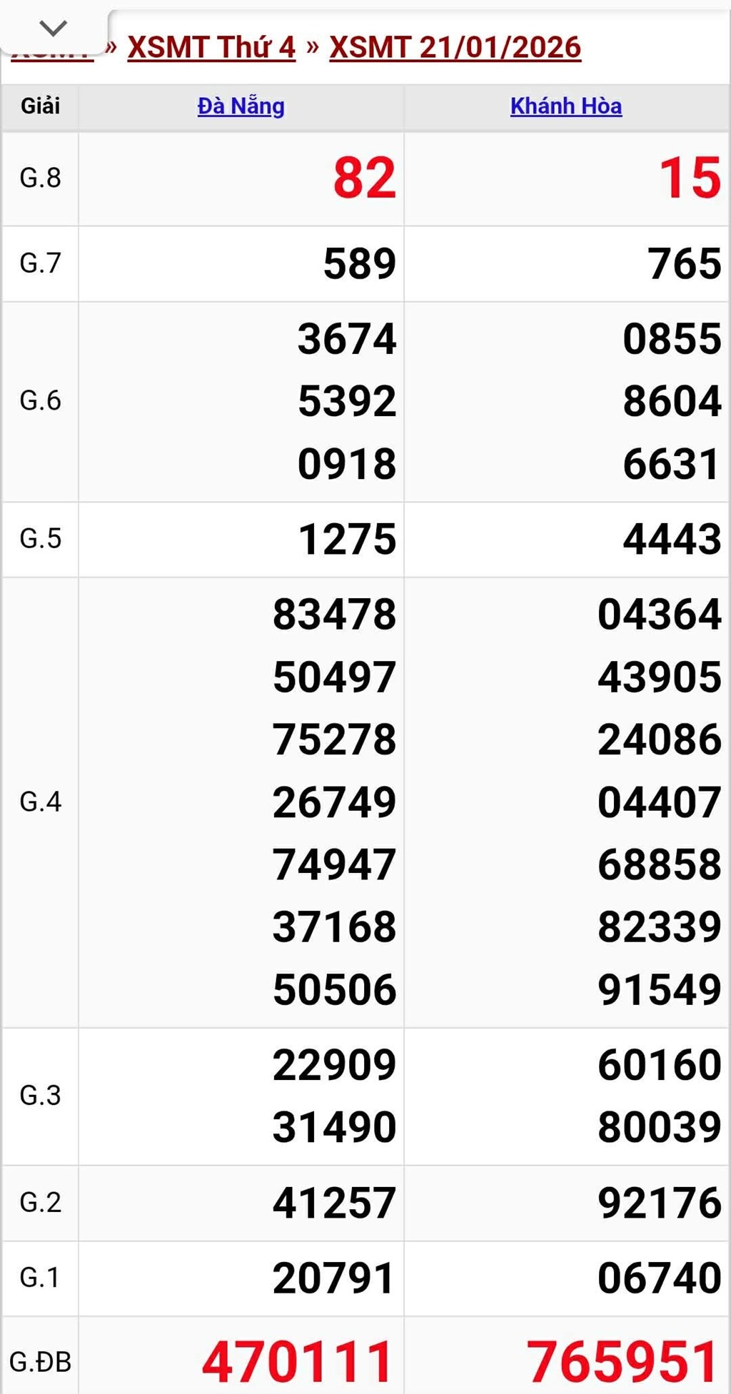 Kết quả xổ số miền Trung ngày 21/1/2026