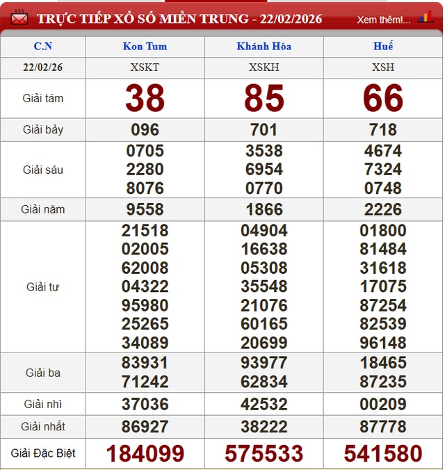 Kết quả xổ số miền Trung ngày 22/2/2026