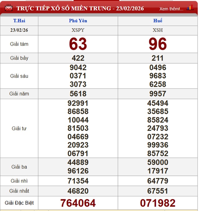 Trực Tiếp kết quả xổ số miền Trung 23/2/2026 - XSMT 23/2