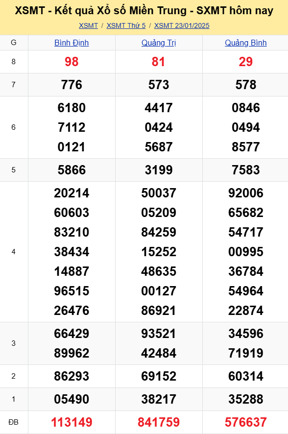 Kết quả xổ số miền Trung ngày 23/1/2026