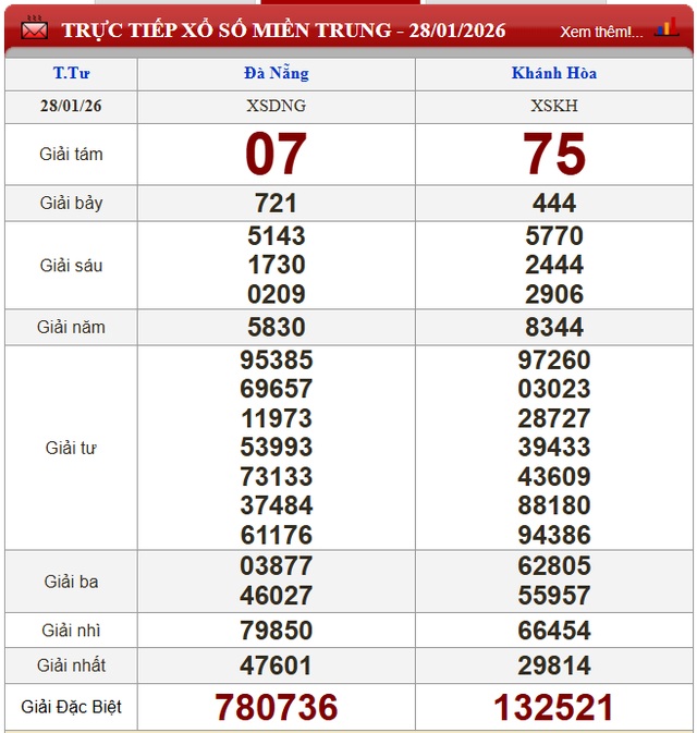 Kết quả xổ số miền Trung ngày 28/1/2026