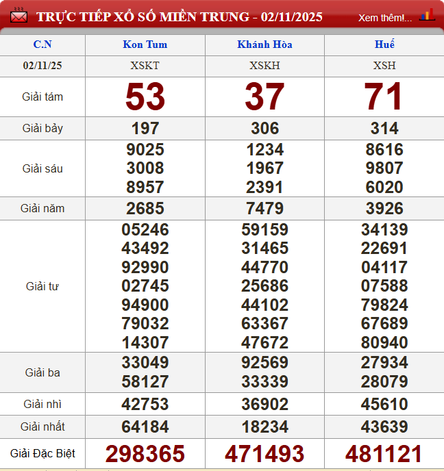 Kết quả xổ số miền Trung ngày 2/11/2025