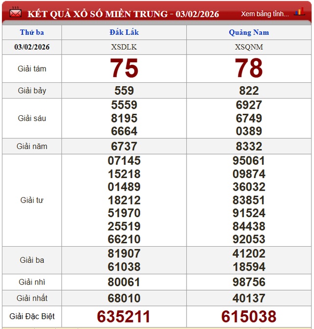 Kết quả xổ số miền Trung ngày 3/2/2026