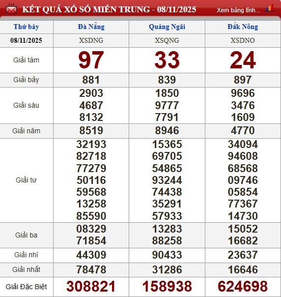 Kết quả xổ số miền Trung ngày 8/11/2025