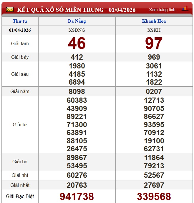 Kết quả xổ số miền Trung ngày 1/4/2026