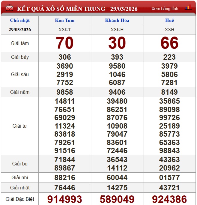 Kết quả xổ số miền Trung ngày 29/3/2026