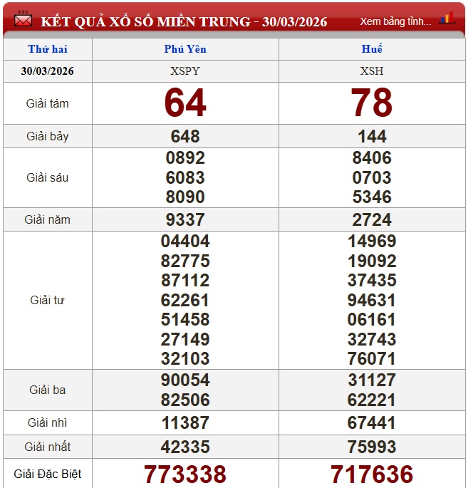 Kết quả xổ số miền Trung ngày 30/3/2026