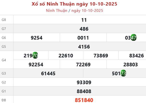XSNT 10/10, Kết quả xổ số ninh thuận ngày 10/10/2025