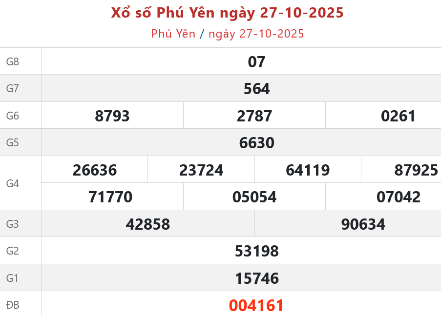 Xem kết quả xổ số Phú Yên ngày 27/10/2025