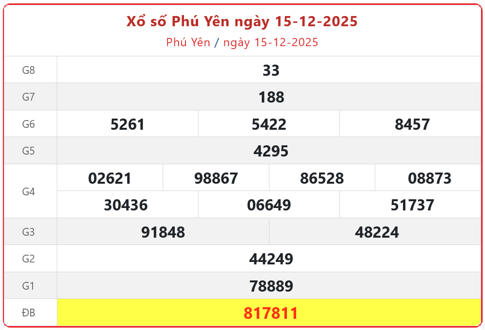 Xem kết quả xổ số Phú Yên ngày 15/12/2025