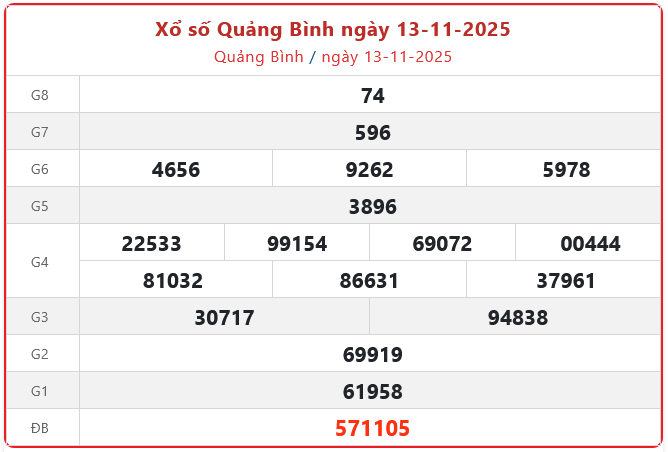 Xem Kết quả xổ số Quảng Bình ngày 13/11/2025