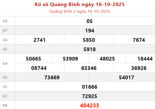 - XSQB 16/10, Kết quả xồ số quảng bình ngày 16/10/2025