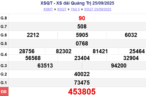 - XSQT 25/9, Kết quả xổ số quảng trị ngày 25/9/2025
