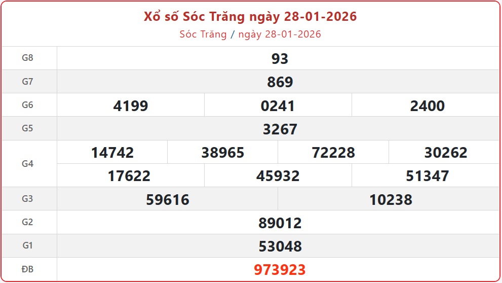 Kết quả xổ số Sóc Trăng ngày 28/1/2026