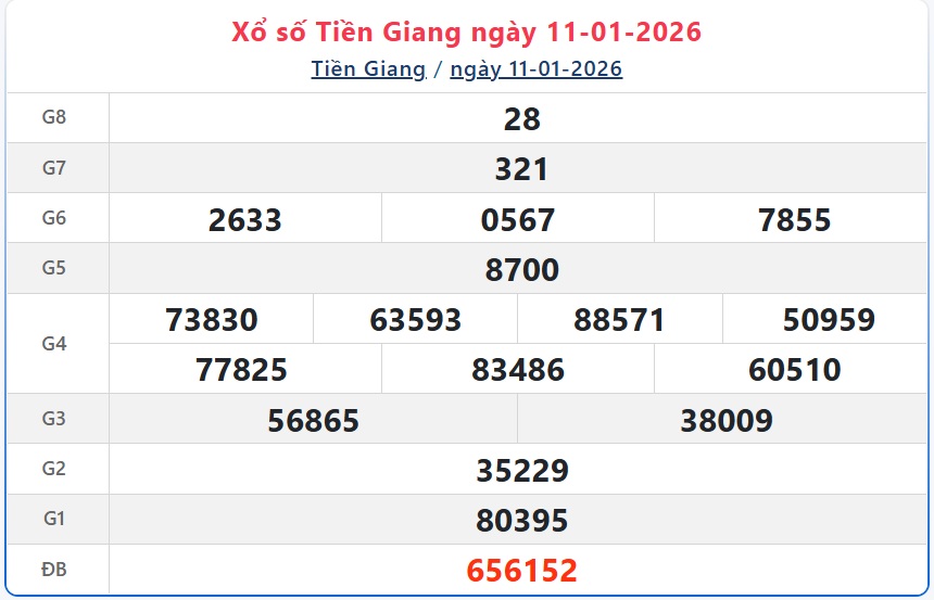 Theo dõi kết quả xổ số Tiền Giang hôm nay 11/1/2026 để cập nhật kết quả sớm nhất.