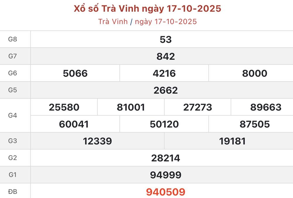 XSTV 17/10, kết quả xổ số trà vinh hôm nay 17/10/2025