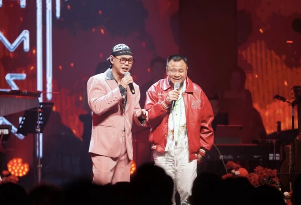 Trong concert Đinh Show kỷ niệm tuổi 50, ca sĩ Phan Đinh Tùng trao tặng NSND Tự Long một chiếc nhẫn kim cương ngay trên sân khấu.