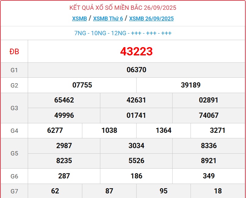 - Kết quả xổ số miền Bắc ngày 26/9. KQXSMB 26/9/2025. XSMB 26/9.