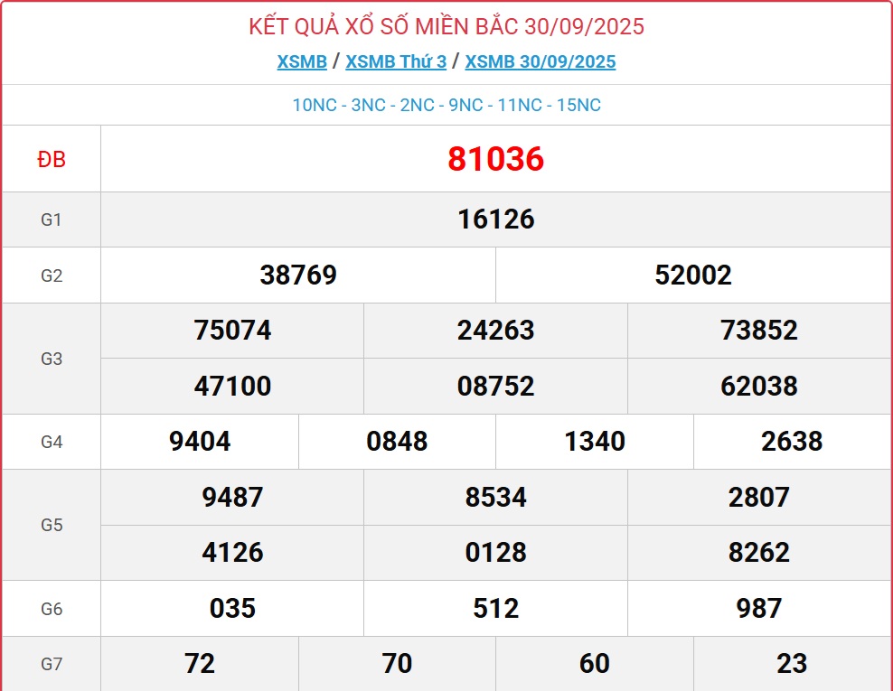 - Kết quả xổ số miền Bắc ngày 30/9. KQXSMB 30/9/2025. XSMB 30/9