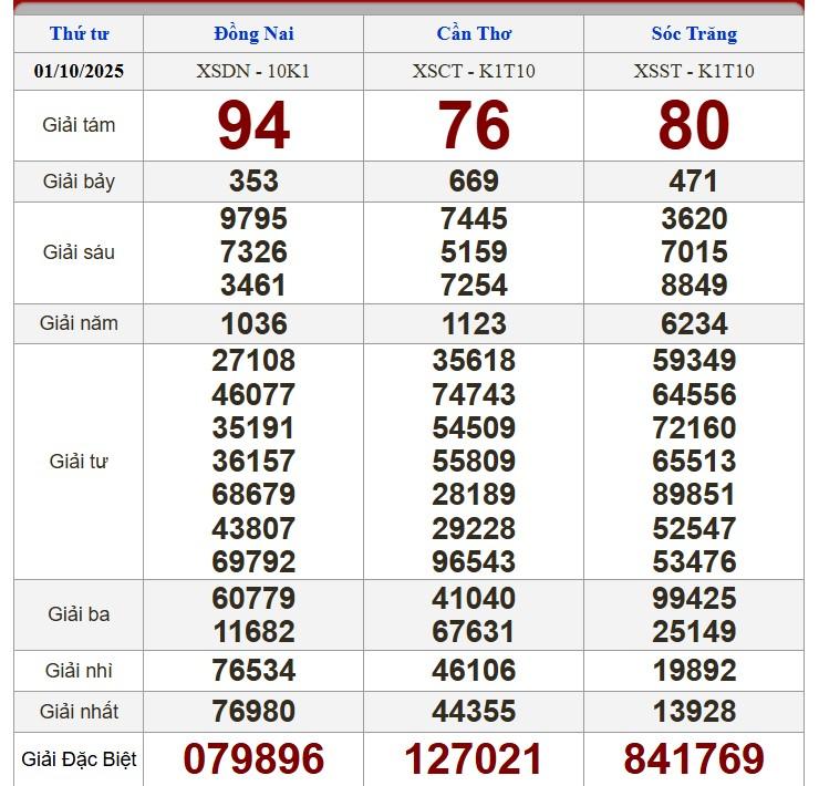 - Thứ Tư: XSMN được tổ chức bởi Đồng Nai, Cần Thơ và Sóc Trăng.