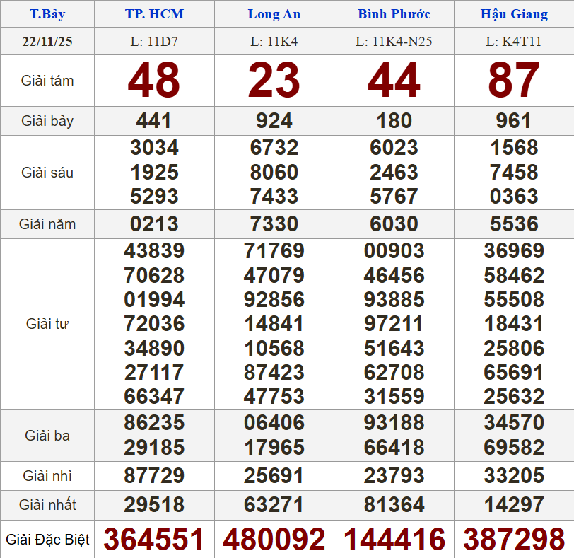 Kết quả xổ số miền Nam ngày 22/11/2025
