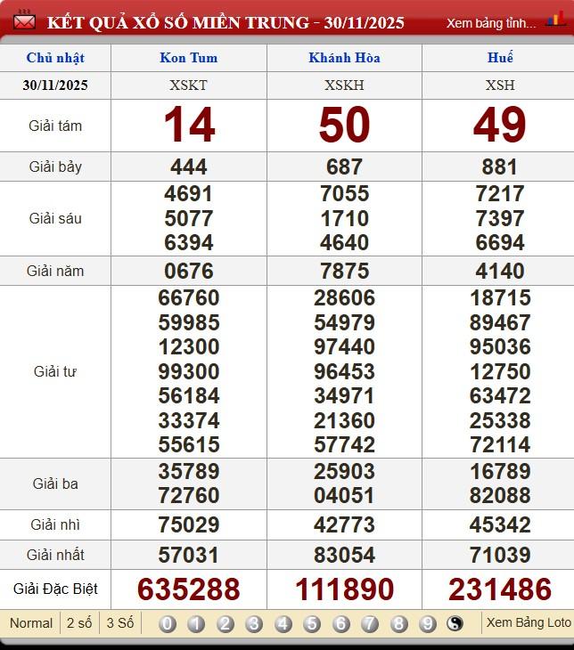 Kết quả xổ số miền Trung ngày 30/11/2025
