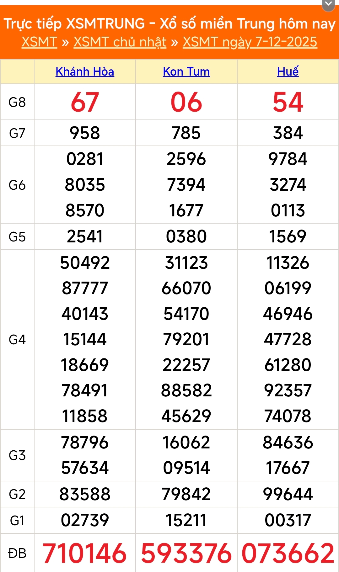Kết quả xổ số miền Trung ngày 7/12/2025