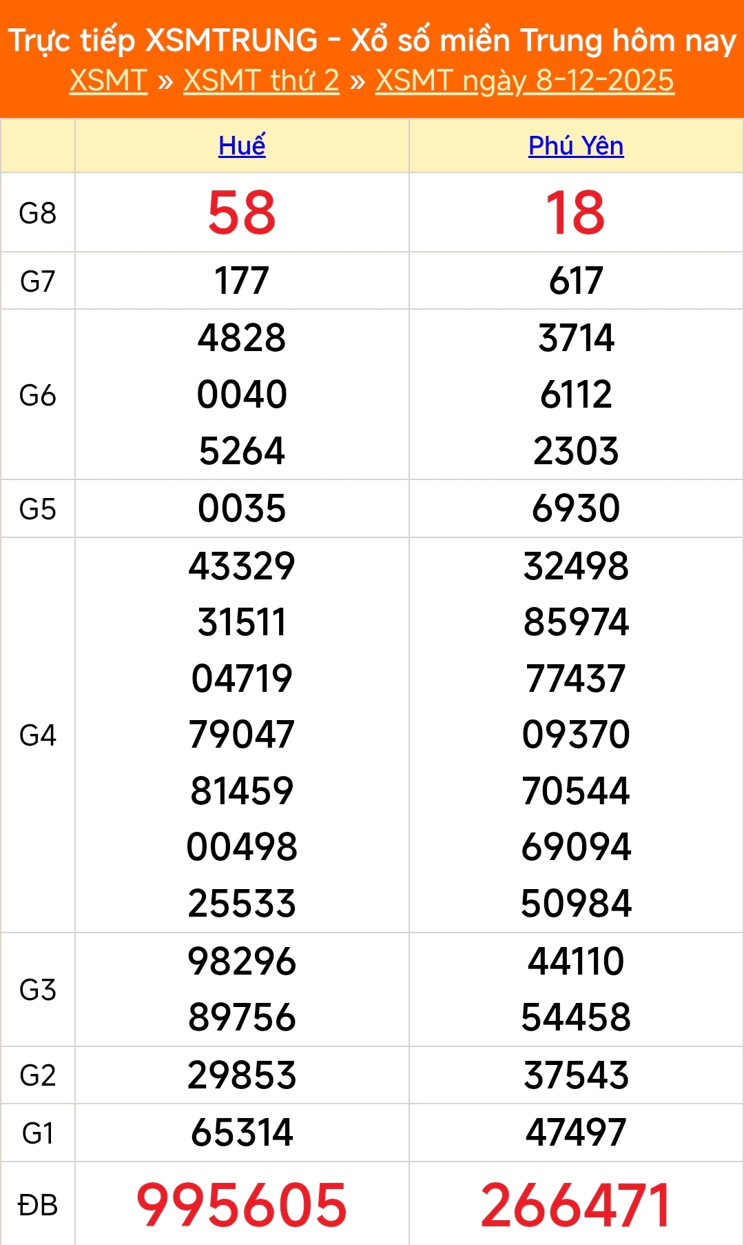 Kết quả xổ số miền Trung ngày 8/12/2025