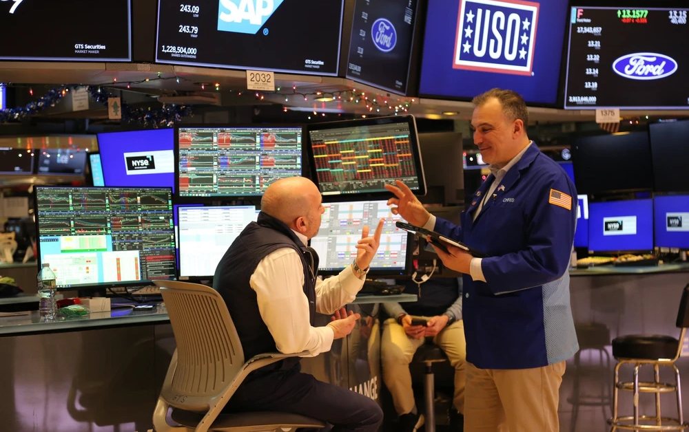 Giao dịch viên tại sàn chứng khoán New York, Mỹ. Ảnh: THX/TTXVN