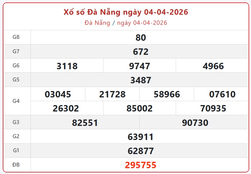 Kết quả xổ số Đà Nẵng ngày 4/4/2026
